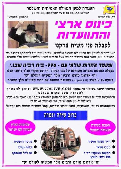 | מלווה מלכה והתוועדות רבתי מוצ' כ' מר חשוון | |
