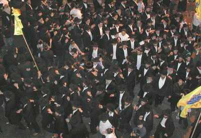 מאות אנ"ש, תמימים, משפיעים ומקורבים, צועדים בתהלוכה עם סיום הריקודים. |