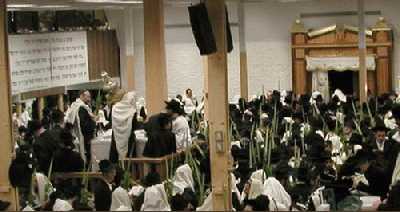 מראה קריאת התורה על רקע הלולבים (י"ח תשרי). |
