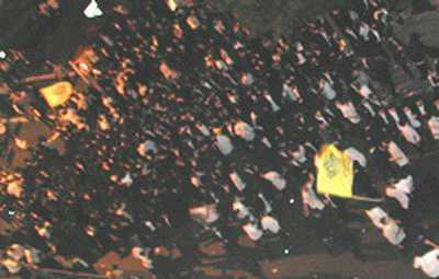 גם בלילה זה התקיימה שמחת בית השואבה בצומת הרחובות, מוטגטמרי-קינגסטון. זהו הלילה הראשון בו נערכת שמחת בית-השואבה בליווי תזמורת ומובן שהדבר מוסיף חיות ומרץ לריקודים. |