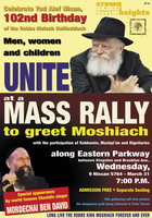 לכבוד י"א ניסן - יום ההולדת המאה ושתיים של כ"ק אדמו"ר מלך המשיח, מארגן "ועד הקהל" של שכונת קראון הייטס בשיתוף עם "מרכז חב"ד העולמי - לקבלת פני משיח" - מפגן אחדות ענק, שיתקיים אי"ה ביום רביעי ט' בניסן. לצורך קיום הארוע, תחסם שדירת איסטערן פארקווי בין הרחובות קינגסטון וברוקלין - שם יתקיים הכינוס הענק. במהלך הערב יופיע ענק הזמר החסידי מרדכי בן דוד בהופעה מלאה. בערב ישתתפו רבני השכונה, משפיעים ואישי ציבור וצפויים להשתתף אלפי תושבי שכונת המלך, תושבי השכונות היהודיות בניו-יורק, וכן המוני האורחים שיגיעו לכבוד י"א ניסן לחצרות קודשנו. |