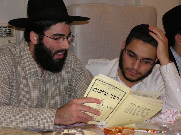 בהמשך ההתוועדות דיברו כמה מן הבחורים דברי תורה או העלו לדיון הערות שהתעוררו להם במהלך לימודם ובעל הבית סיפר על כמה קירובים להם זכה מהרבי. במהלך השיעור חתמו כל הבחורים על דף בו הם מבקשים מהרבי מה"מ להתגלות תיכף ומיד, לאחר שאחרון הבחורים כתב את שמו ואת שם אימו הדף הוכנס לאחד מכרכי ה'אגרות קודש'. שאלה מענינת במיוחד שהתעוררה לאחד הבחורים בהקשר לאחת משיחותיו של הרבי מה"מ שליט"א על פרשת נח. באחת השיחות אומר הרבי שהכפילות במילה נח קשורה לכך שאם ישראל היו שומרים שתי שבתות היו נגאלים, בהערה על השיחה שואל הרבי שאלה סמויה על כך שכתוב בזהר אפילו אם בנ"י היו שומרים שבת אחת היו נגאלים, ועל כך מתרץ שהכוונה שבכל שבת יש שתי עניינים ואם היו שומרים על שניהם בשבת אחת היו נגאלים. שאל הבחור הרי ראינו שבני ישראל היו במדבר הם כן שמרו שבת אחת? ובה מקושש העצים וחטא בשבת שבאה לאחר מכן.? ההתוועדות הסתיימה בשעה מאוחרת באווירת סיפוק ותוכן חסידי. המכתב לכ"ק אדמו"ר שליט"א.