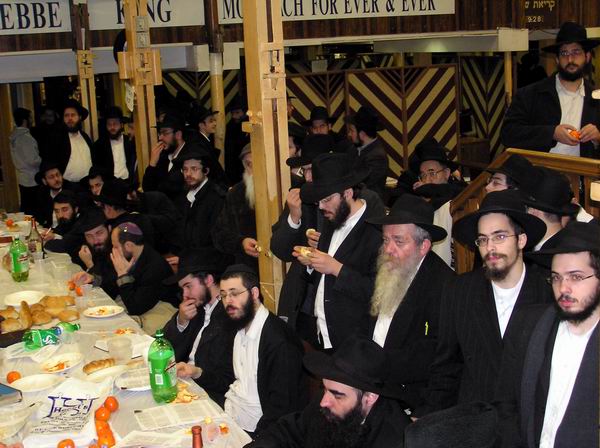 קצת אחרי השעה עשר התאספו ובאו לבית חיינו מאות מתלמידי התמימים, מקורבים ואנ"ש תושבי השכונה. פני כולם הייתה, ההתוועדות המרכזית לציון יובל שנת השבעים וחמש לנשואי הרבי מלך המשיח שליט"א. את ההתוועדות פתח גבאי בית חיינו שיש לו כבר חזקה ויותר בארגון ההתוועדויות ב770. הלה קרא לקהל לתפוס את מקומו וליטול ידים לסעודה של מצווה. בהמשך דיבר על ניגונים שונים שניגנו החסידים במהלך השנים ביום גדול ונשגב זה לפני הרבי. בסיום דבריו הזמין את הרב גולום, משפיע בישיבת תומכי תמימים המרכזית ב770, שדיבר בארוכה על ההיבטים החסידותיים שיש ללמוד מיום זה ועל הנהגות שונות שראו החסידים אצל הרבי באותו היום. לאחריו פצח הקהל בניגון סוחף שנמשך על פני דקות ארוכות, בעת הניגון הייתה הרגשה מיוחדת של אחדות בלתי רגילה בין המשתתפים ומקולם ללא ספק נשקפה הכמיהה והתחינה לחזות עוד הערב בהתגלותו של מלך המשיח. כעת הזמין הרב גרעליצקי את הרב גיקובסון לשאת נאום. בפתח דבריו פנה הרב גיקובסון על הרב גרעליצקי ובגלוי לב אמר, "הרב זלמן גורארי'ה חסר פה היום". בהמשך דבריו סיפר על כך שהרב גורארי'ה נוהג היה להשתתף בקביעות בהתוועדות זאות תוך שהוא נוטל בה חלק מרכזי. אפיזודה מענינית סיפר הרב גיקובסון ששמע מביתו של הרב גורארי'ה שאביה היה נוהג בכל שנה להתקשר אל הרבנית ולברך אותה על יום חתונתה באחד השנים כשהוא התקשר הוא שמע את קולו של הרבי עונה מהעבר השני את מי אתה צריך? וכשהרב גוראריה הסביר את הסיבה לשמה התקשר אמר הרבי: גם אותי אתה יכול לברך באותה ברכה. רק אז הבין הרב גורארי'ה שהוא בעצם משוחח עם הרבי ובתו מספרת שהייתה כזאת בהלה שהיא עצמה ברחה מן החדר. הרב גיקובסון דיבר במשך שעה ארוכה וריתק את התמימים בדבריו הקולחים והנהירים. ההתוועדות הסתיימה בשעת לילה מאוחרת כשהקהל יוצא מחוזק ומאוחד בדבר ההתקשרות לאילנה דחיי הרבי מלך המשיח שליט"א ומצפה בקוצר רוח להתגלותו המידית.
