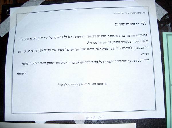 מודעת אבל - בתו של הרב דוד שי' רסקין