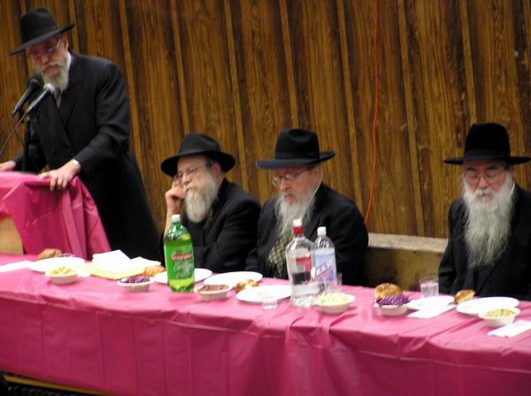 המנחה הרב שמואל מנחם מענדל בוטמאן התמקד בדבריו על התפקיד המיוחד שהטיל עלינו הרבי בשיחת ג’ שבט תשנ”ב. את מסכת הנאומים פתח ה’מרא דאתרא’ וחבר הבד”צ הרה”ג אברהם אזדאבא שהתעכב על מספר נושאים ובפרט דיבר אודות הנקודה של יום זה - ההתקשרות לרבי. לאחר מכן, הוזמן הרב שלום מענדל סימפסון מזכירו של הרבי ומנהל ה’מרכז לעניני חינוך’ שדיבר כדרכו, בחמימות ובחום חסידי. דבריו נסבו על שני צידי המטבע, אשר מחד, נגמרה עבודת הבירורים, מלך המשיח כבר נמצא ופועל פעולתו, רק נותר לפקוח את העינים ולראות את הגאולה שכבר נמצאת. לאידך, ישנם מנגדים, מנגדים שחושבים ומדברים הפך שיחות מפורשות, על ענינים של היפך החיים וכו’, והמפליא מכל ש”ממך יצאו”... לאחר דבריו המחזקים והמעוררים של הרב סימפסון דיבר הרב מרדכי גוראריה, רב ביהכ”נ חברת ש”ס, אשר התעכב סביב המילים “עמדו הכן כולכם”, והסביר שצריך לעמוד באופן של ביטול, ובפרט ביום מיוחד וזכאי כגון זה, אשר צריך להוסיף ברגש הביטול לרבי. אחריו דיבר הרב דוד רסקין חבר הנהלת אגו”ח העולמית, שעורר את המשתתפים בקיום הוראותיו של הרבי מתוך קבלת עול, וזה יזרז את התגלותו של הרבי. הרב צבי יהודה פוגלמאן, שליח הרבי ורב קהלת חב”ד בוואסטר, עורר על אחדות החסידים הנדרשת בימים אלו. אחרון הנואמים היה חה”כ לשעבר מר מיכאל קליינר שדיבר בנושא ‘שלימות הארץ’. בעת ההתוועדות חולקה תשורה מיוחדת לכל המשתתפים - מאמר ד”ה שמאלו תחת לראשי תרצ”א, אשר לכ”ק אדמו”ר מהוריי”צ נ”ע. שיצא לאור לרגל יו”ד שבט, על-ידי מערכת “אוצר החסידים”. בסוף ההתוועדות צפה הקהל בוידאו מהרבי מלך המשיח שליט”א מיו"ד שבט ה'תש"ל. לאחר מכן, התיישבו קבוצות של אנ”ש, שלוחים ותמימים להתוועדויות שנמשכו עד שעות הבוקר המוקדמות.