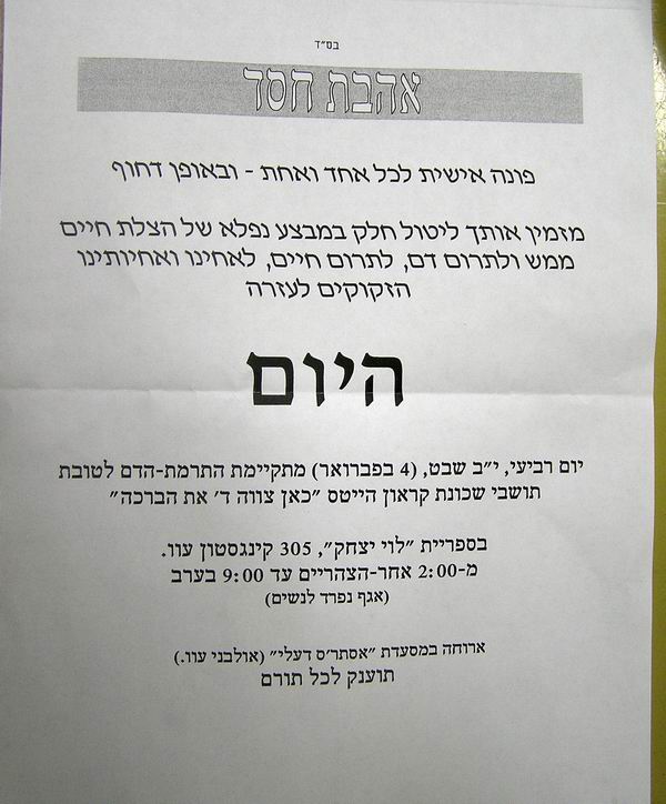 התרמת דם שניה השנה תחת אירגון 'אהבת חסד'