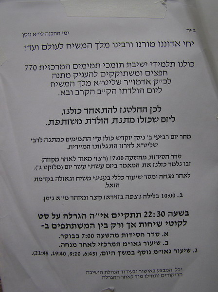 לכבוד יום הולדתו של הרבי מלך המשיח שליט"א הקרב ובא, והיום בו דיבר הרבי על אודות חשיבות ה'יחי המלך' בכך שזהו דבר המוסיף חיות למלך, החליטו אתמול (ד') תלמידי התמימים העושים את שנת ה'קבוצה' ב770, להתאחד ולתת מתנה לרבי ע"י יום לימודים מיוחד: חצי שעה קודם תחילת סדר חסידות בוקר, היה הזאל מלא בעשרות חברותות שלמדו את המאמר שיצא לי"א ניסן תשמ"ט - "ביום עשתי עשר יום", בסיום הסדר חולק מבחן לבחינה עצמית על המאמר, כמו כן הקפידו על שמירת הסדרים בדיוק במשך היום והמשתתפים השתדלו להגיע לפחות לסדר 'גאולה ומשיח' אחד במשך היום. שיעור גאולה ומשיח מיוחד התקיים לאחר תפילת מנחה שנמסר על ידי הרב נעם ווגנר. בסוף היום בשעה 10:00 הוקרן וידאו של הרבי מי"א ניסן תשמ"ז ולאחריו קויימה הגרלה על סט ליקוטי שיחות שבה זכה הת' מנחם מענדל הלפרין.