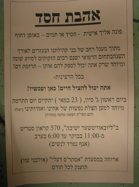 מחר: התרמת דם ב"ליובוויטשער ישיבה"