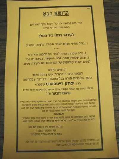 קודם עלינו מודיע ר' מנחם גרלצקי' שההקפות יתקיימו בעז"ה בערך בשעה תשע. בינתיים בסוכת 770 מסתיימים ההכנות האחרונות, כבר משעות הצוהריים עמלו מספר תמימים בניצוחו של התורם, איש החסד ר' נחום שיחי' מרקוביץ', בעריכת שולחנות ל"קידוש רבתי כיד המלך". קהל האלפים סועד את ליבו בלחמניות פשטידות פרות וסלטים. באחת הפינות מוזגים "לחיים" לעילוי נשמת הרה"ח איש החסד רחמים (רמי) אנטיאן ע"ה, שהשנה הוא יום היארצייט הראשון שלו. בינתיים בזאל הקטן לא מחכים לשעה תשע, המעגלים מתחילים כבר להסתחרר, לפעמים גם ליפול... סמוך לקירות הוקמו "פירמידות" משולחנות וספסלים, עשרות בחורים כבר תפסו עליהם מקומות, מאמר "המועט מחזיק את המרובה" מתקיים כאן בפשטות. "אום אתה הראית" בפסוק הראשון מכובד כ"ק אדמו"ר מה"מ שליט"א כמידי שנה הקהל ממתין בתקווה לשמוע את הפסוק גם באוזני הבשר כעבור מספר שניות נשמעת שאגה אדירה "אתה הראית לדעת..." הניגון הידוע מרתת את הלב. מלבד הפסוק הראשון והאחרון, כובד אדמו"ר שליט"א בהרבה מהפסוקים האמצעיים שנקנו על ידי אנ"ש למען כ"ק אדמו"ר שליט"א. את השמחה אין לתאר מילים רק ימעיטו... נציין רק כי הריקודים נמשכו עד אור הבקר.