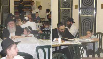 בקיץ מתקיים הלימוד בשבת אחרי הצהרים, ובחורף במוצש"ק. וגם לגשמיות דואגים. בכל פעם, לאחר הלימוד סועדים המשתתפים את ליבם, בסעודה שלישית או במלוה מלכה, מקנחים בממתק, ובמוצאי שבת בהגרלת פרסים. בימים אלו מכינים את רשימת המצטיינים לשנת תשס"ב, וביניהם תערך אי"ה בזמן הקרוב הגרלה על כרטיס טיסה לרבי מלך המשיח שליט"א. הכרטיס מיועד - כמובן - לאב ובנו... על המפעל הכביר, עם ההוצאות הלא מועטות, לקח אחריות ר' אדם דיילס, ועל המלאכה בשטח מפקח ר' יאיר ממן. בתמונה: מהמשתתפים בלימוד: הרב מנחם מענדל גלוכובסקי - חבר בי"ד רבני חב"ד באה"ק, והרב אלימלך שחר - מנכ"ל מוסדות חינוך חב"ד ברחובות, בשעת הלימוד המשותף