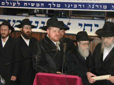 ההתוועדות המרכזית יום הבהיר י"ט כסלו חג הגאולה התשס"ג ב-770, והכתרתו של הרה"ח אהרון יעקב שוויי שליט"א לכהן פאר כרב השכונה ומרא דאתרא.