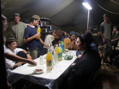 עם השמע הידיעה כי הלילה מתכננת ממשלת הדמים של שרון לשלוח את חיילי צבא ההגנה לישראל בכדי לגרש יהודים מביתם, נזכרנו בחברים שלנו - הבה"ת יצחק סנדרוי עם רעהו הבה"ת מקמל היושבים על גבעת משיח - מצפה יצהר, בגובה 770 מטר מעל פני המים. הרב שבתי בנדט - מנכ"ל עמותת ארץ חפץ, שאל את הרבי מה ניתן לעשות, והתשובה - התוועדות. להשלמת העניין, מקבל הרב בנדט טלפון בהול מניו יורק - מהרב יוסי קלייינמן השוהה בימים אלו בחצרות קדשנו, ויוסי מספר כי כשכתב לרבי "הושיעה נא", ענה הרבי לעשות התוועדות, והוא מתקשר לשבתי בשביל לבקש ממנו לארגן... חיש קל התארגנה קבוצה: הרב יהודה פרנקל התנדב ברכבו לקחת את הנוסעים: הרב שבתי בנדט, הרב יעקב לנצ'נר, ושלושה בחורים משיעור ג' מישיבת מאור מנחם, שקבלו רשות מיוחדת - בהתחייבות כי למחרת בסדר חסידות - הם הראשונים להגיע לזאל. הרב יעקב לנצ'נר ביקש ברכה לנסיעה, והרבי ענה במכתב למשתתפים בהנחת אבן הפינה לשיכון חב"ד, וביקש למסור ממנו פריסת שלום לכל המשתתפים... באותו לילה הרסו שלטונות המדינה מספר מאחזים, אבל גבעת משיח - מצפה יצהר - נותר על כנו, וממתין להמשך הבניה של שיכון חב"ד.