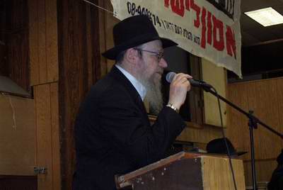 כעת הזמין מנחה הכינוס הרב יקותיאל ראפ את הרב שמואל חפר - חבר אגודת חסידי חב"ד בארץ הקודש. הרב חפר דיבר על כך שהרבי לימד אותנו שכל ארוע קשור למקום והזמן בהם הם מתרחשים. ואכן 770 - ד' אמות של כ"ק אדמו"ר מלך המשיח שליט"א וערב ג' תמוז - אתחלתא דגאולה של אדמו"ר הריי"ץ ממאסרו הם המקום והזמן המתאמים לפעול ולהתעוררר בשלימות הארץ עליהם דיבר וזעק הרבי רבות. הרב מאיר דרוקמן ן רב חב"ד בקריית מוצקין דיבר על חשיבות הפעולה המעשית מעבר למחאה המילולית. לאחר מכן דיבר הרב שלמה סגל מבה"ד בקראון הייטס. הרב יקותיאל ראפ הזמין לדוכן הנואמים את הרב משה הבלין - רבה של קריית -גת ובהזדמנות זו איחל לו גם מזל-טוב לרגל היבחרו. הרב הרשל בקרמן הפועל רבות בנושא שלמות הארץ דיבר בשפה האנגלית כשהוא קורא לעשות ולפרסם את הדברים שהרבי אמר וכתב. הרב דניאל כהן מנהל בית חב"ד בחברון שדיבר על המסר האקטואלי מפרשת שלח בה אנו למדים שמי שרואה את עצמו כחגב נראה כך בעיני אחרים... הרב דניאל הביא כדוגמה את הישוב היהודי בחברון שמתנהג בדרך של "אם במחנים" כשהיהודים מסתובבים ללא פחד ובכך עוצרים את תוקפנות האוייב.. הרב יקותיאל ראפ - מנהל מטה שלימות הארץ, חתם את הכינוס בקריאה לרבני חב"ד באה"ק לצאת לפעילות רחבת היקף בפירסום דברי הרבי. הרב ראפ הדגיש שאין מדובר בפעילות פוליטית ובתמיכה במפלגה פוליטית כלשהי אלא בפרסום דברי הרבי בלבד. בכל דרך אפשרית משלטי חוצות ועד לחלוקת עלוני הסברה. הכינוס הסתיים בשעה שלוש ועשרה עת נכנס כ"ק אדמו"ר מה"מ שליט"א לתפילה והקהל נעמד על רגליו בשירת "יחי אדוננו מורנו ורבנו מלך המשיח לעולם ועד". הרב שמואל בוטמן חבר אגו"ח נואם בעצרת |
