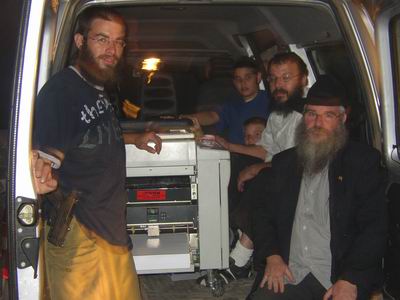 ר' דורון סנדרוי ובנו התמים איציק בניידת ההדפסה