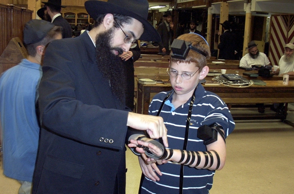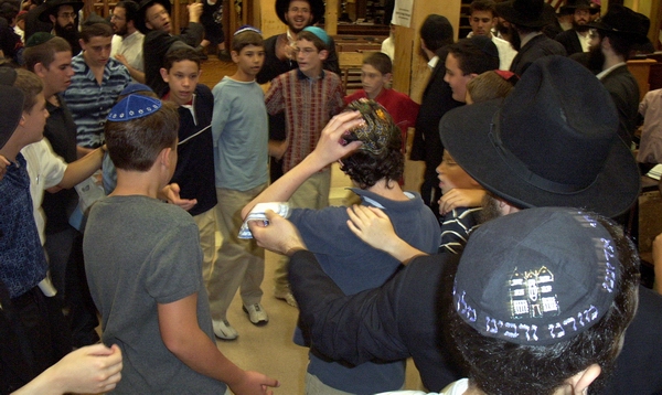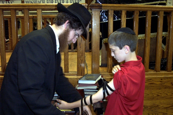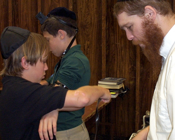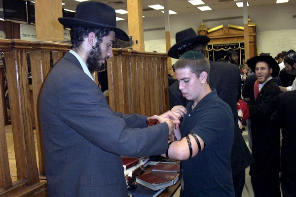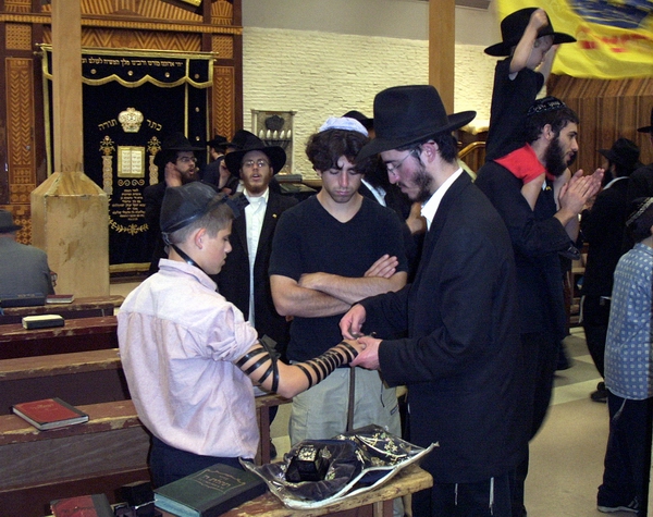 הנחת תפילין וריקוד לאחרי תפילת מנחה עם הרבי שליט"א.