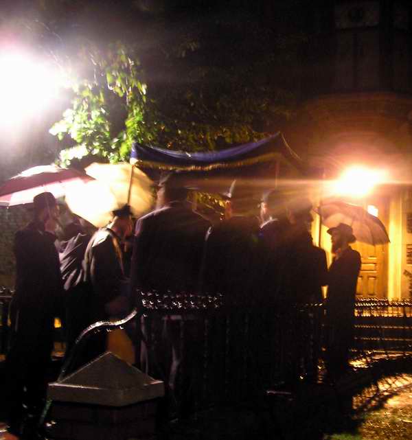 חופה על יד חדרו של הרבי מה"מ שליט"א תחת ממטרי הגשם.