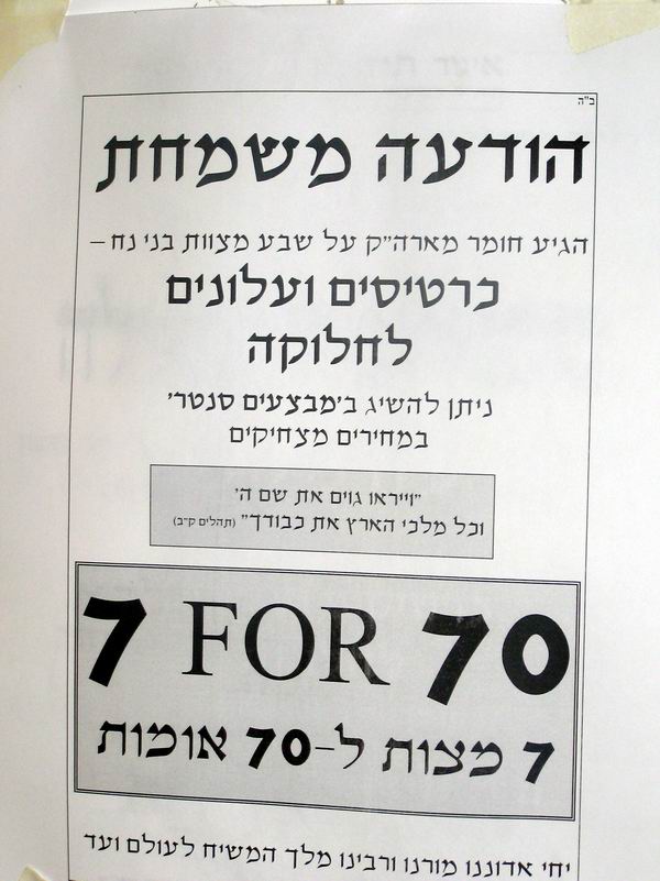 ש"פ חיי שרה ה' תשמ"ז בכנס השלוחים יש את מעלת וכח הציבור, הנותנים כוח מיוחד לכאו"א מהשלוחים בשליחותו הפרטית... ובפשטות, לכל השלוחים ישנן פעולות משותפות שבהם יכול כל אחד ללמוד ולקבל עצה ועידוד וחיזוק משליח שני שהצליח בשטח מסויים, כולל גם - להפיץ צדק ויושר גם באוה"ע ע"י קיום ז' מצוות בני נח, ולהתייעץ בכל זה כיצד ניתן להוסיף ולהרחיב זאת בכל מיני אופנים וכדלקמן.